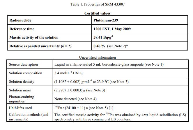 SRM 4330C 钚-239放射性標準品